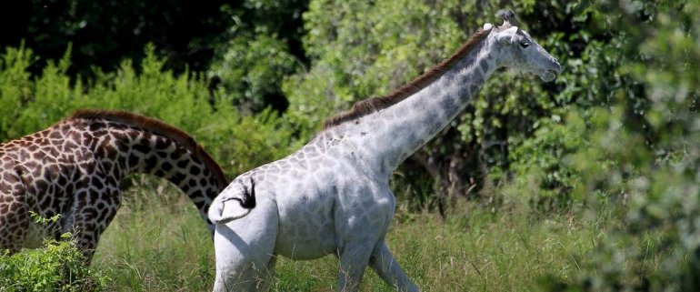 Белый жираф говорите? Да ладно, кого мы тут уже обсуждали цветного? Ну вот Черный Лев и Белый Лев, вот Розовая лисица и белая горилла. Мы даже как то разоблачали черного фламинго